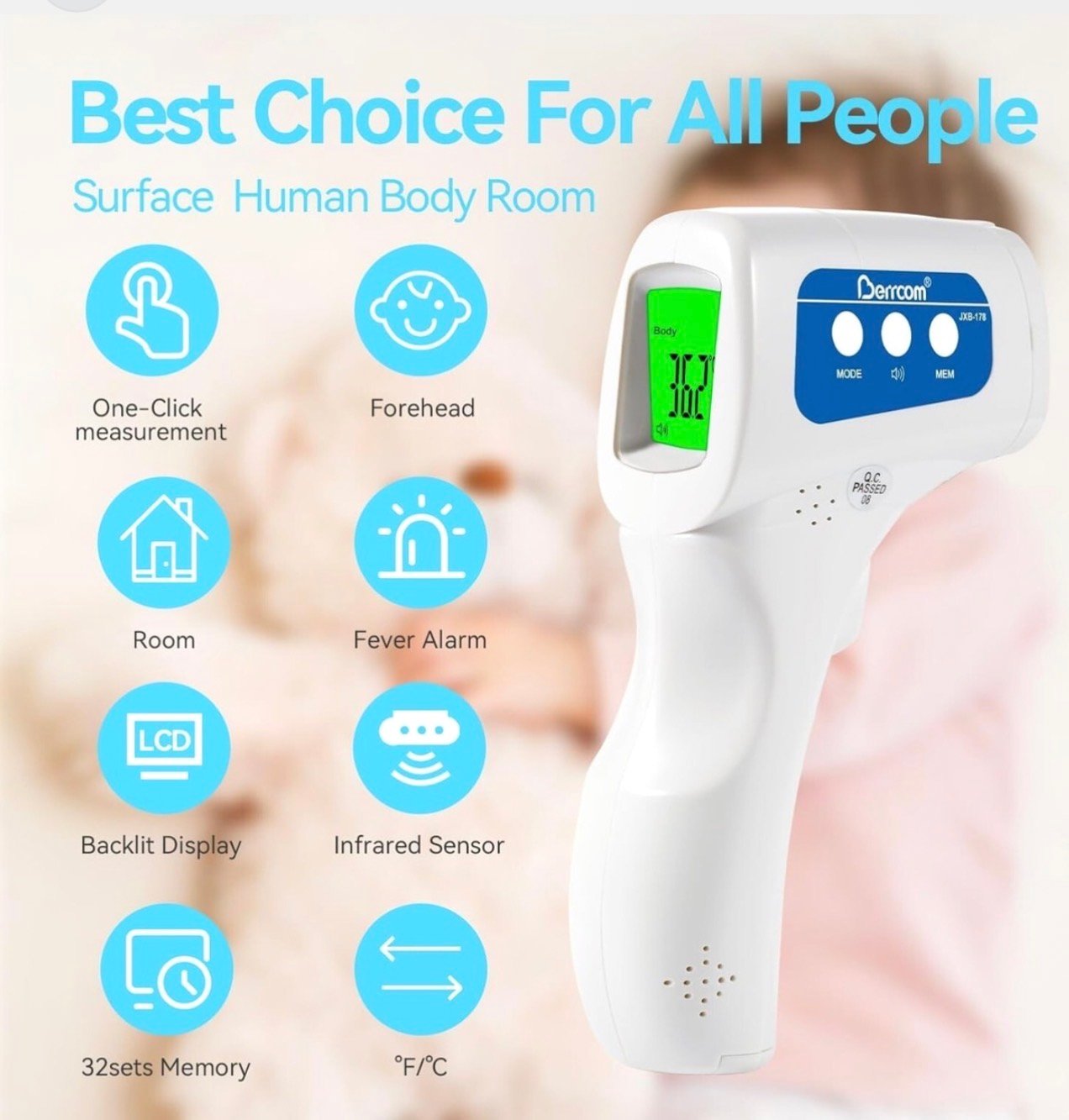 Berrcom JXB-178 – Non-Contact Infrared Thermometer (6-in-1)